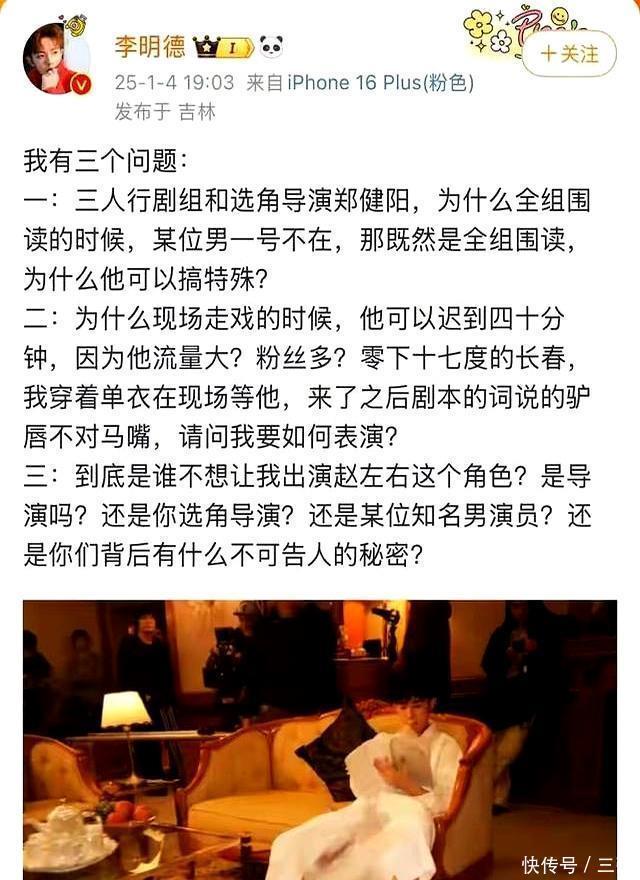 当然也有弱势一方主动发声试图博同情。像李明德前阵子在社交平台公开控诉马天宇耍大牌,说自己冻得瑟瑟发抖还被无视,结果双方你来我往互相甩证据。